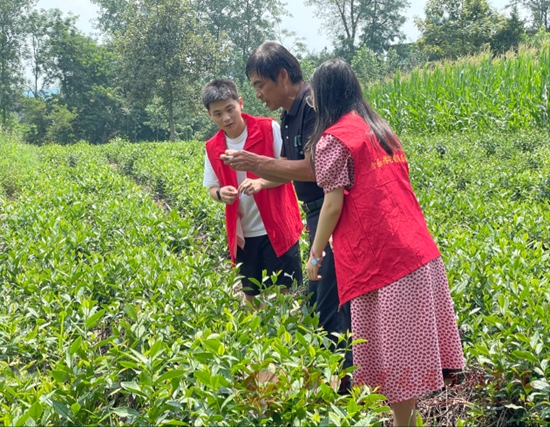 村党支部书记张广西热情的接待了队员们,他介绍说,罗营村位于淮滨县邓湾乡南7公里处,淮河在此像一张弓一样拉出一个全长4.5公里的几字弯,因种茶历史悠久,古称“茶塘湾”,全村总面积约4平方公里,农户户数801户,总人口3049人,耕地1762亩,林地650余亩。2021年,以村集体的名义注册了富硒茶叶合作社,提出村产业发展规划,瞄准“看河看绿看罗营,品水品茶品乡愁”的文旅融合发展目标,打造富硒茶产业1000亩,初步形成罗营茶旅品牌。2022年,被推荐为信阳市乡村振兴示范引领村后,罗营村已申报茶旅相关项目,估算总投资650万元,项目完工后将实现村集体经济年收入50万元以上,预计直接带动500余户从事茶种植、茶观光等茶旅产业,间接惠及罗营全村及周边村群众。