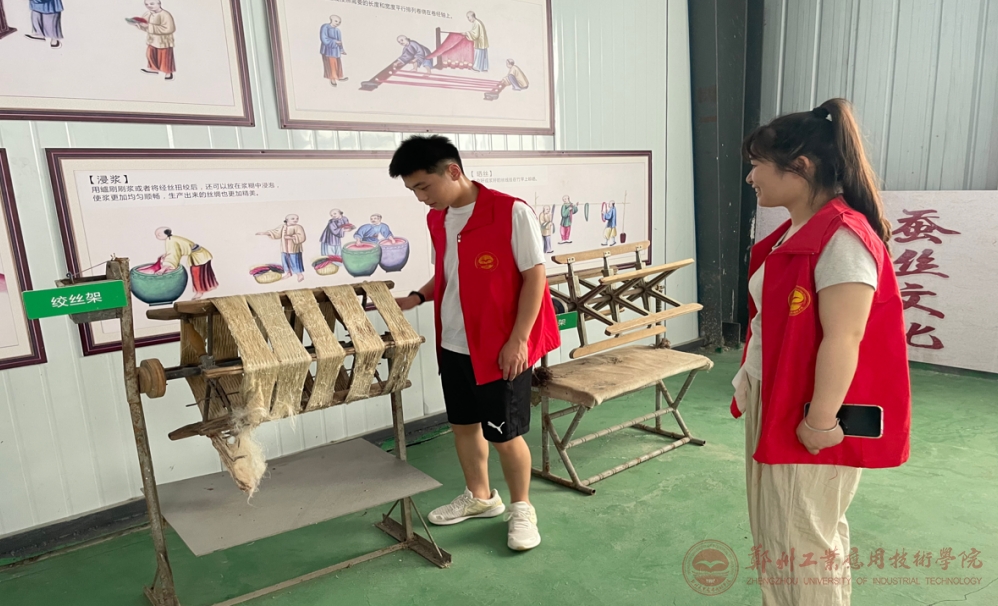 7月27日-28日,社会实践队员在罗营村党支部书记张广西的带领下来到桑蚕产品中心,他们看桑林、进车间、学技术,中心负责人介绍说:该村围绕“桑、蚕、丝、桑蚕文化”4个方面形成了涵盖种植、养殖、初加工、深加工、线上电商、线下实体6个环节的全产业链条。双联盟年产蚕茧达20万斤,已开发桑叶茶、蚕沙枕、蚕丝被、桑果干、桑葚酒、桑叶面条等产品20余种,带动632户群众通过承包桑园、务工、销售等增加收入,涉及的村集体经济收入均达到10万元以上。近年来,开发桑蚕茧丝绸文化旅游项目,推进桑蚕茧丝绸产业功能由“生产”向“生产、生活、生态和文化融合”转变的尝试。