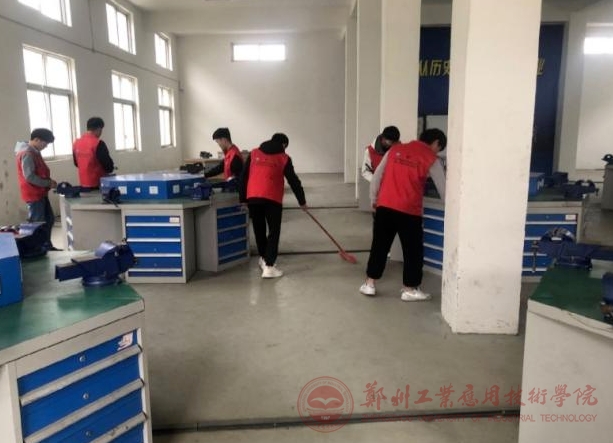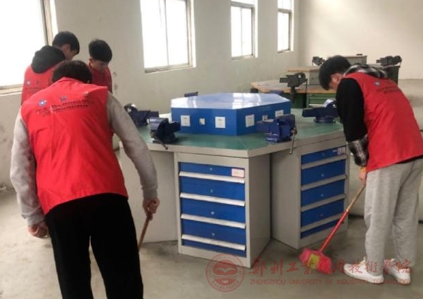 在打扫的过程中, 身体力行,和学生们一起带头扫地、擦窗、整理工具、打扫实训台、台虎钳等。不仅示范正确的清扫方法,还给予他们积极的鼓励和肯定,让每个学生都感受到成就感和满足感。同时,也不忘教育他们关于环境保护和卫生习惯的重要性,希望他们能在日常生活养成良好的习惯。