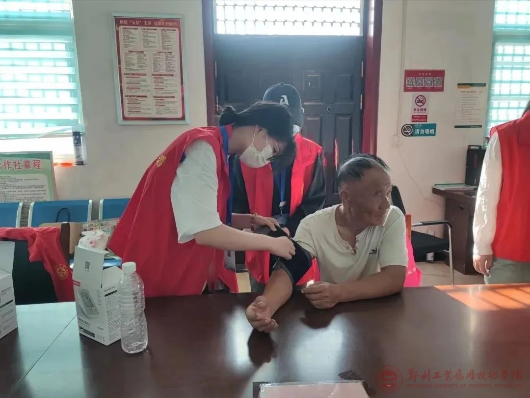 医学院爱心天使志愿服务队7月15日前往新郑市和庄镇郑庄村,组织志愿者通过测血糖、测血压、医疗知识宣讲等方式开展本次三下乡乡村振兴志愿活动,在活动的开始,志愿者们合理分配好自己的任务,然后有条不紊的进行此次志愿服务的各项活动。在活动的过程中,志愿者们积极与老人进行交谈,询问他们的健康和生活状况,仔细给予老人他们的情况的注意事项。在此期间,志愿者们表现出了互帮互助,团结友爱的精神,充分表现出来郑工学子昂扬向上,乐于奉献的志愿服务精神。