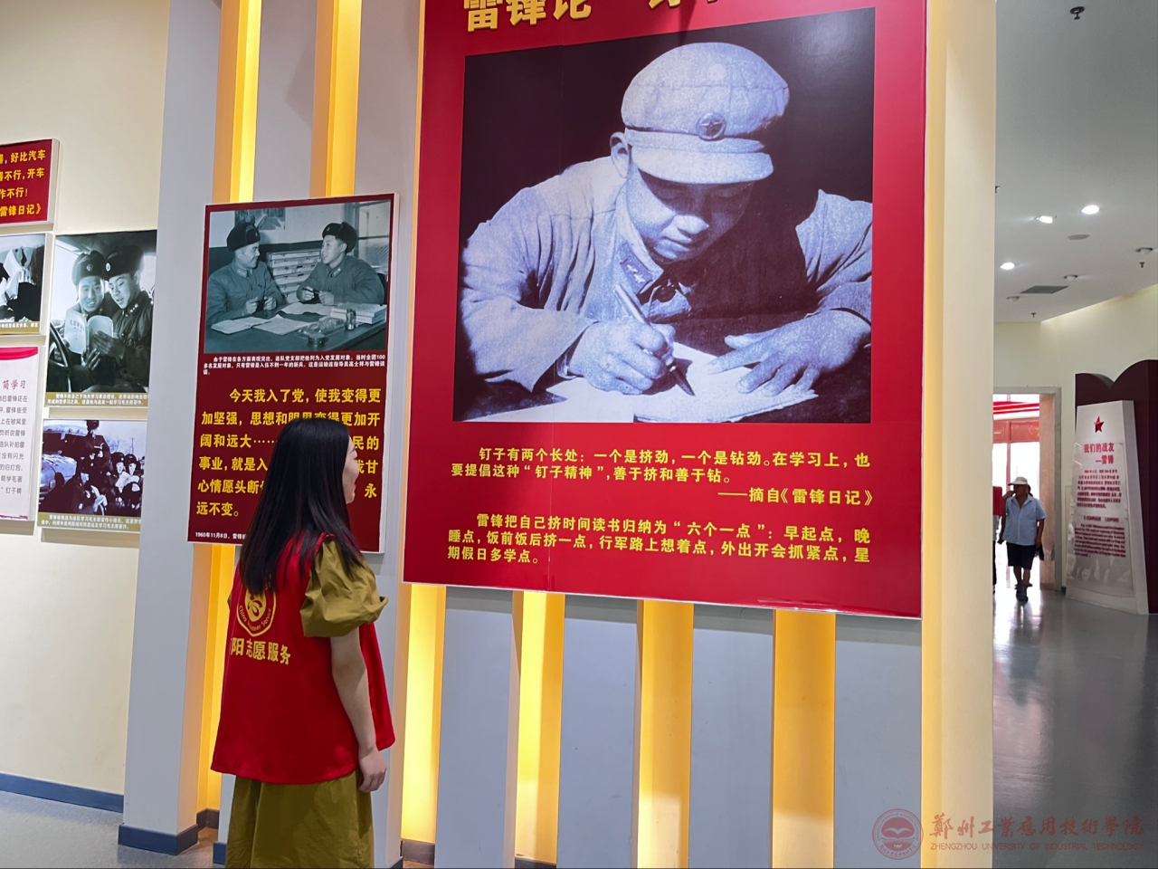 寻伟人足迹,学革命历史,承红色精神。8月8实践团参观邓州市编外雷锋团展览馆,学员们通过一张张照片、一件件实物和一段段历史的记载,了解了雷锋同志的生平事迹,学习到了他无私奉献的精神,也看到了姚德奇等优秀先烈对他精神的发扬与传承,体会到了党的领导的正确与伟大。学员们纷纷被先辈们的革命精神所震撼,深受启发,立志以实际行动向党组织靠拢。