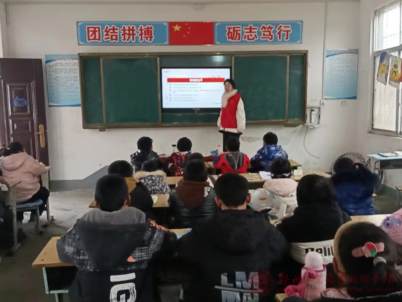 软件学院“青鸽”志愿服务团的王宁同学,在今年的寒假期间参加“禄”力同心,传承红色基因志愿服务活动。她向南阳市镇平县晁陂草场吴小学里面的学生宣传了焦裕禄精神,让他们了解并传承焦裕禄精神。
