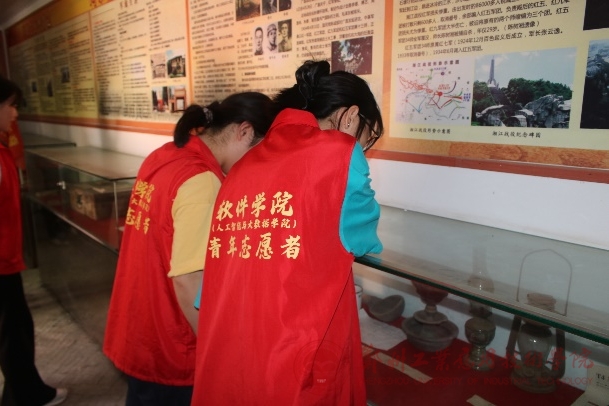据了解,周聚荣参加过中原大战、宁都起义、赣州战役、湘江战役、金沙江阻击战等二百多次大小战役的老红军。志愿者们瞻仰了周聚荣老前辈的故居,纪念馆的展墙上记录了周聚荣经历的红军长征和抗日战争的英雄事迹。从一幅幅图片、一个个实物中,了解到周聚荣所在的中国工农红军在两万五千里长征中,突破敌军的重重封锁,从弱到强走过的艰辛历程。每一件鲜活的事例为大家上了一堂生动直观的爱国主义教育课,同学们认真聆听,不时驻足凝视,深刻的感受到在革命战争年代,在中国共产党的正确领导下,革命先烈崇高的革命思想,坚定的斗争意志以及为革命事业抛头颅洒热血的崇高精神。
