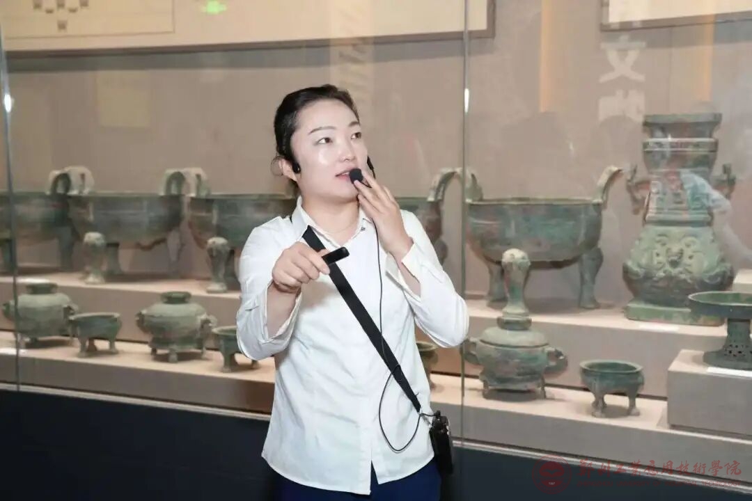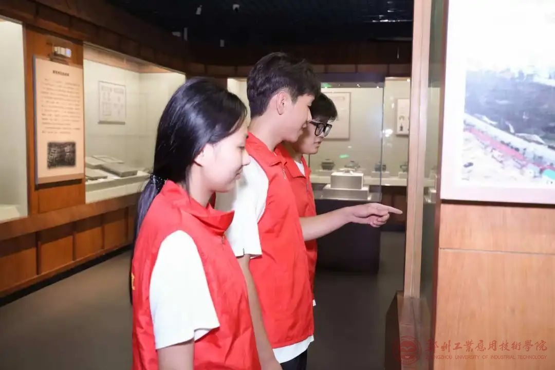 实践团队在讲解员的引导下有序走进新郑市博物馆,青铜器、陶器等珍贵文物琳琅满目,承载着这座城市厚重的历史记忆。在一件件精美的文物前,实践团成员们驻足观赏,在历史与现实的交织中感受文明传承的厚重力量。