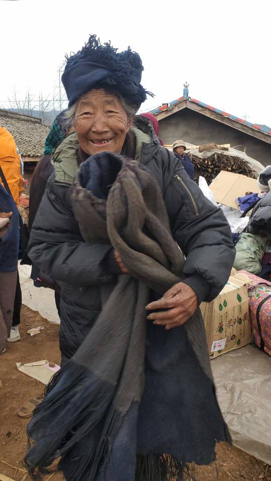 村民们有序地排队领取保暖物资,从图上我们可以看见领取到新衣服的村民们是那么的高兴,他们的笑容是那么的干净,纯真。看着他们这么开心的样子,顿时一抹暖意涌上心头。