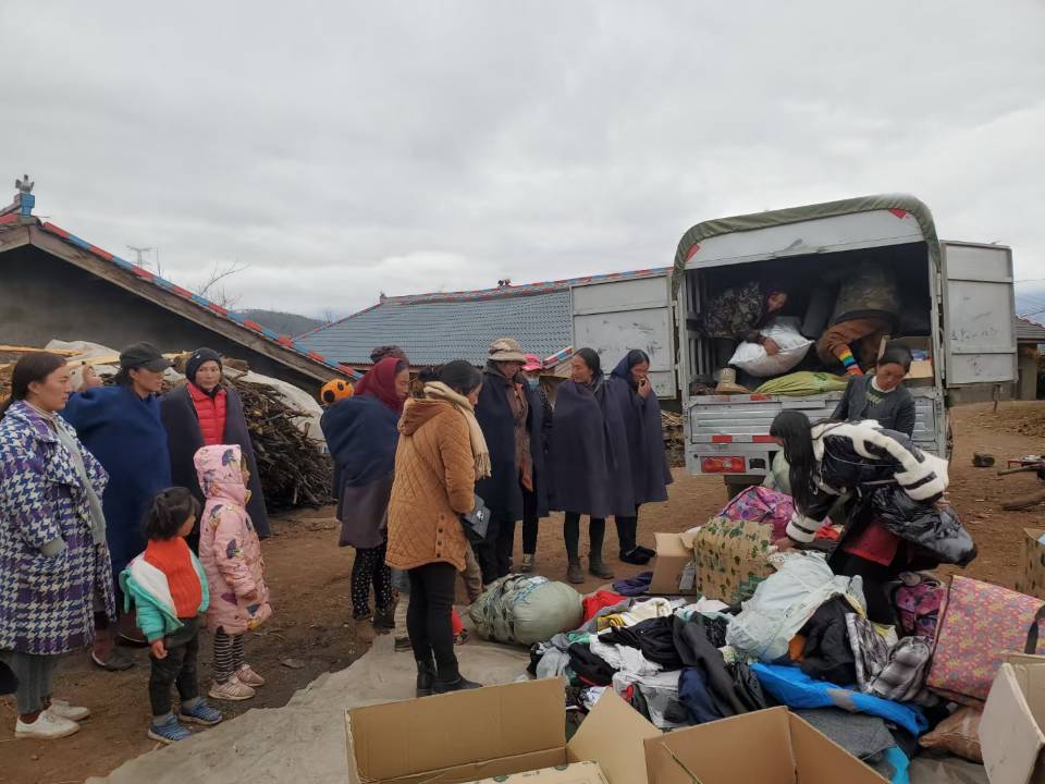 “谢谢你们”“希望它能温暖你”前来领取保暖物资的村民和工作人员交谈到。工作人员在并不平坦的黄土地上不断重复着为村民们发放御寒衣物,同时也有热心的村民前来帮忙,一同为需要帮助的人送上一份份温暖的“暖阳”。