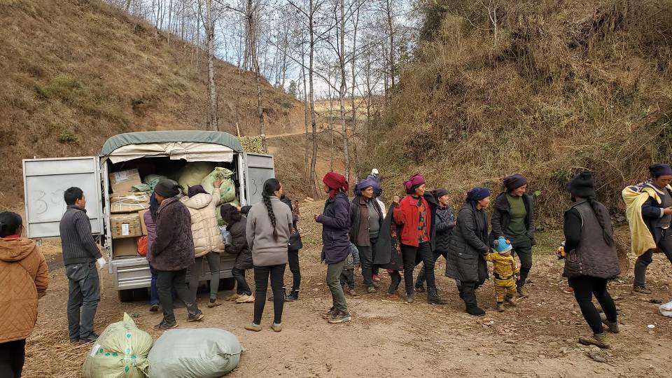 在经历了五天的努力,各个服务点获得捐献衣物1500多件,然后用运往了四川大凉山区,几日的奔波,运输车已顺利的到达了大凉山,为当地村民送上保暖物资,让这深山里的严寒不再那么刺骨。
