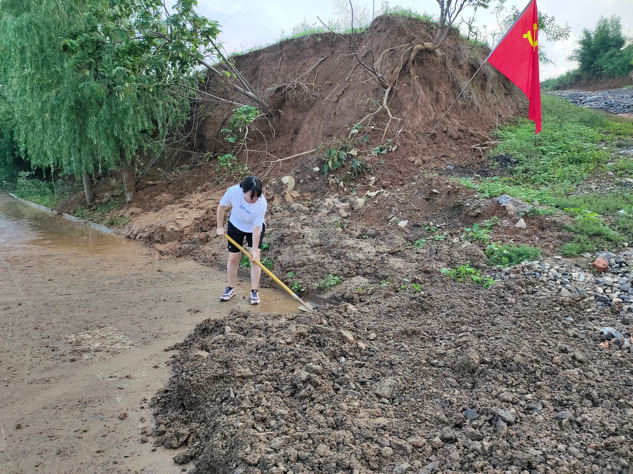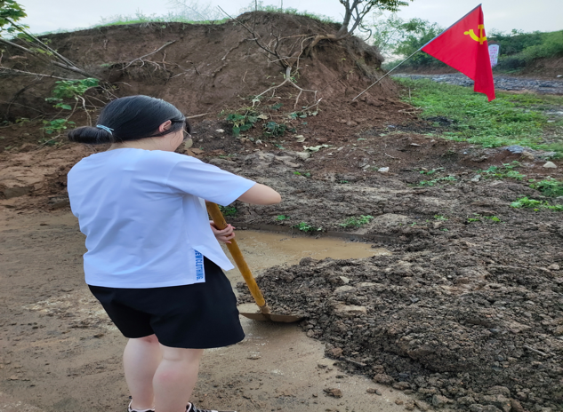 18级商务英语本科1班学生夏敏,家住鹤壁市山城区大河涧乡马横岭村。暴雨来袭,给家乡道路带来了大量泥土,堵塞了原本就狭窄的道路,这给村民出行带来了极大不便。她见此情况后,拿着铁锹,一锹一锹的将堵塞了道路的泥土挖走。她说:“我的力量很渺小,可是我还是愿意去奉献我这绵薄之力,看着重新畅通的道路,我的内心充满了快乐与自豪。”
