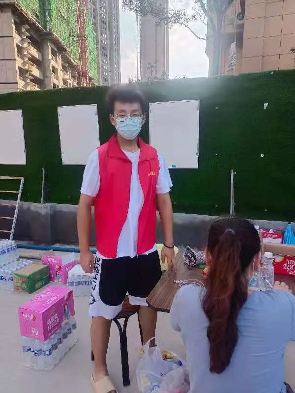 家在周口的信息工程学院20级应用电子技术1班尹子豪积极响应号召,在灾情发生之后,第一时间加入社区的救援队伍。他听从安排,为受灾的居民发放生活物资,并同救援队一道,深入受灾严重地区,帮助受影响较大的居民。他由衷的感慨:这几天看到一辆辆的救援汽车,看到网友一句句的河南加油,心里非常感动。在这里非常感谢各地的援助,敬礼!