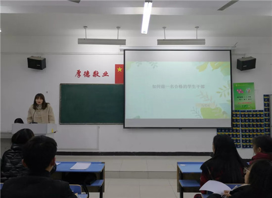 为进一步加强团学工作的规范性,促进学生会更好开展工作,努力培养理想信念坚定、业务本领过硬、工作作风优良的学生干部,外国语学院于2019年11月27日下午6点在文华2-102召开“如何做一名合格的学生干部”主题团课,参加此次团课的有外国语学院第六届全体学生会成员,本次团课由第四届学生会主席马雪可主讲。