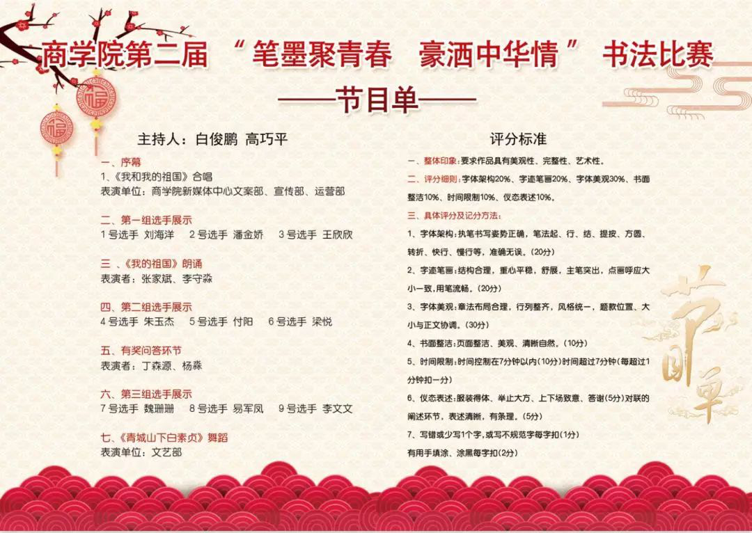 根据商学院的工作进程和工作部署,大致把“书法大赛”活动定为以下步骤: