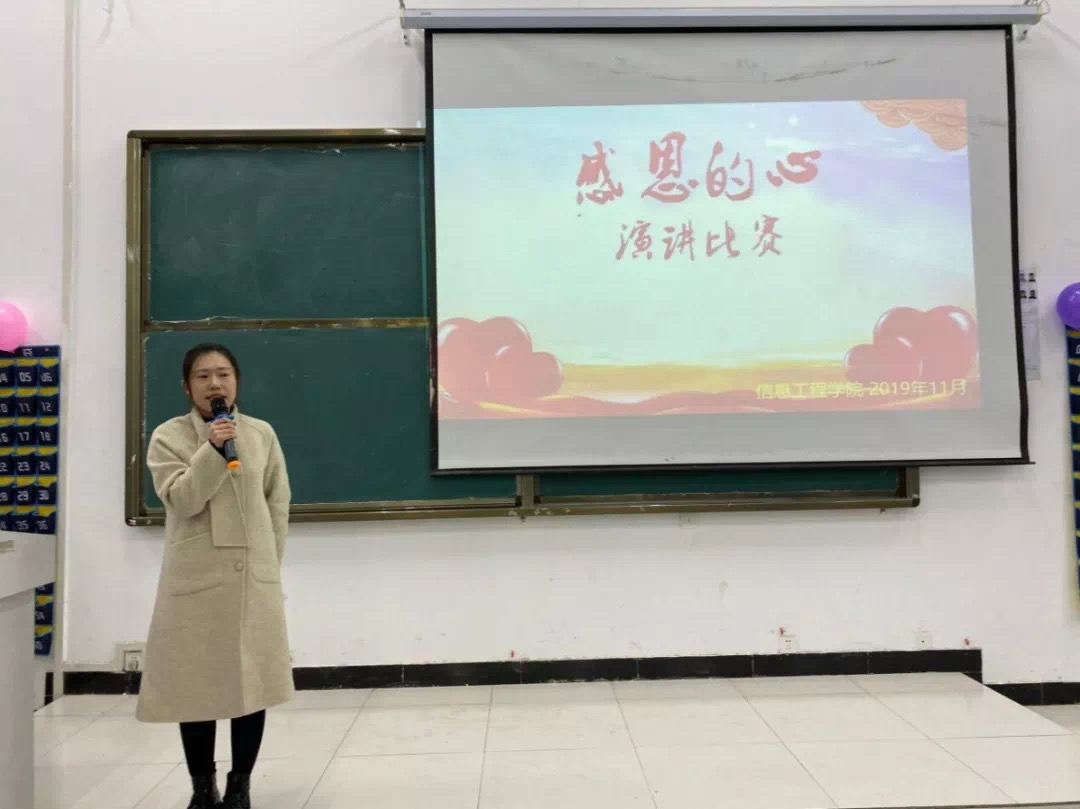 为进一步弘扬社会主义核心价值观,构建大学生诚信感恩教育体系,培育和促进和谐校园氛围,为全面提高人才培养质量打下坚实的思想道德基础,信息工程学院于周日晚上6:40在信科楼阶六教室举办“感恩的心”主题演讲比赛。本次活动到场嘉宾有信息工程学院各辅导员老师、信息工程学院部分大一新生。