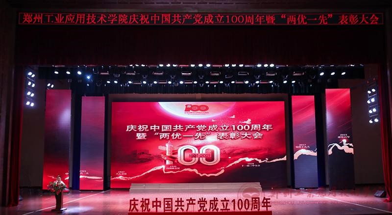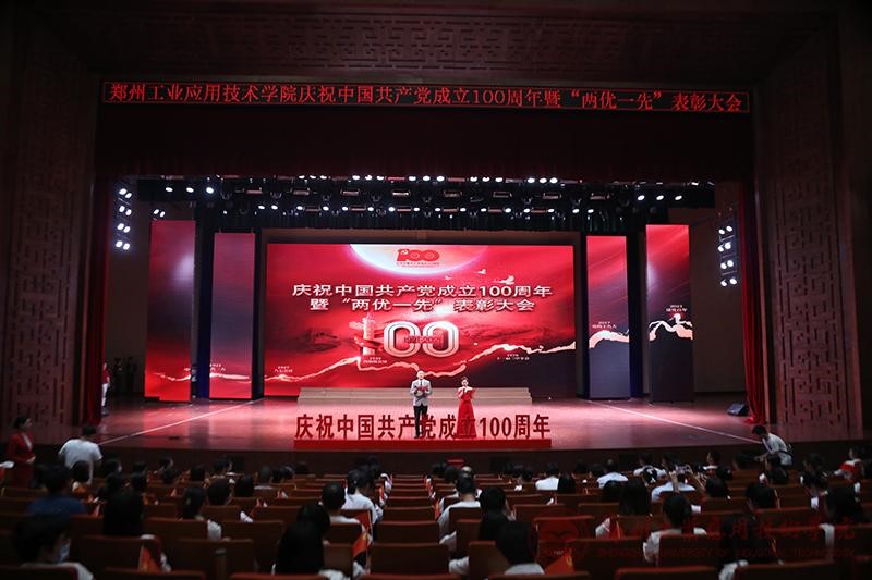 (文/毛华中 图/刘泽承)为庆祝中国共产党百年华诞,6月22日晚,郑州工业应用技术学院在国际学术交流中心隆重召开庆祝中国共产党成立100周年暨“两优一先”表彰大会,校领导孙柏梁、姚锡远、闫兵、徐春华、杨新新、王洪海、邱天河同志和校监事会主席彭毅同志,全校各单位党政负责人,各基层党组织书记及师生党员代表近千人参加了此次大会。