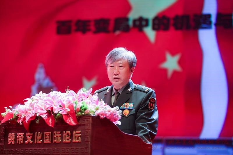 图为中央马克思主义理论研究和建设工程咨询委员会主任、中共河南省委原书记、中华炎黄文化研究会首席顾问徐光春作报告