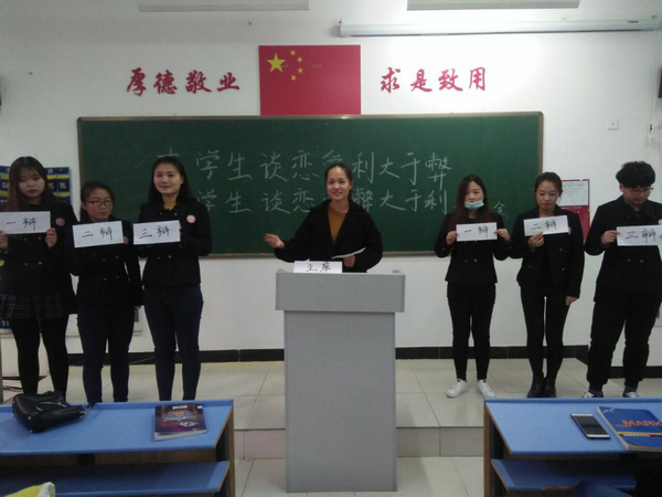 商学院举办“大学生谈恋爱利大于弊”主题辩论赛