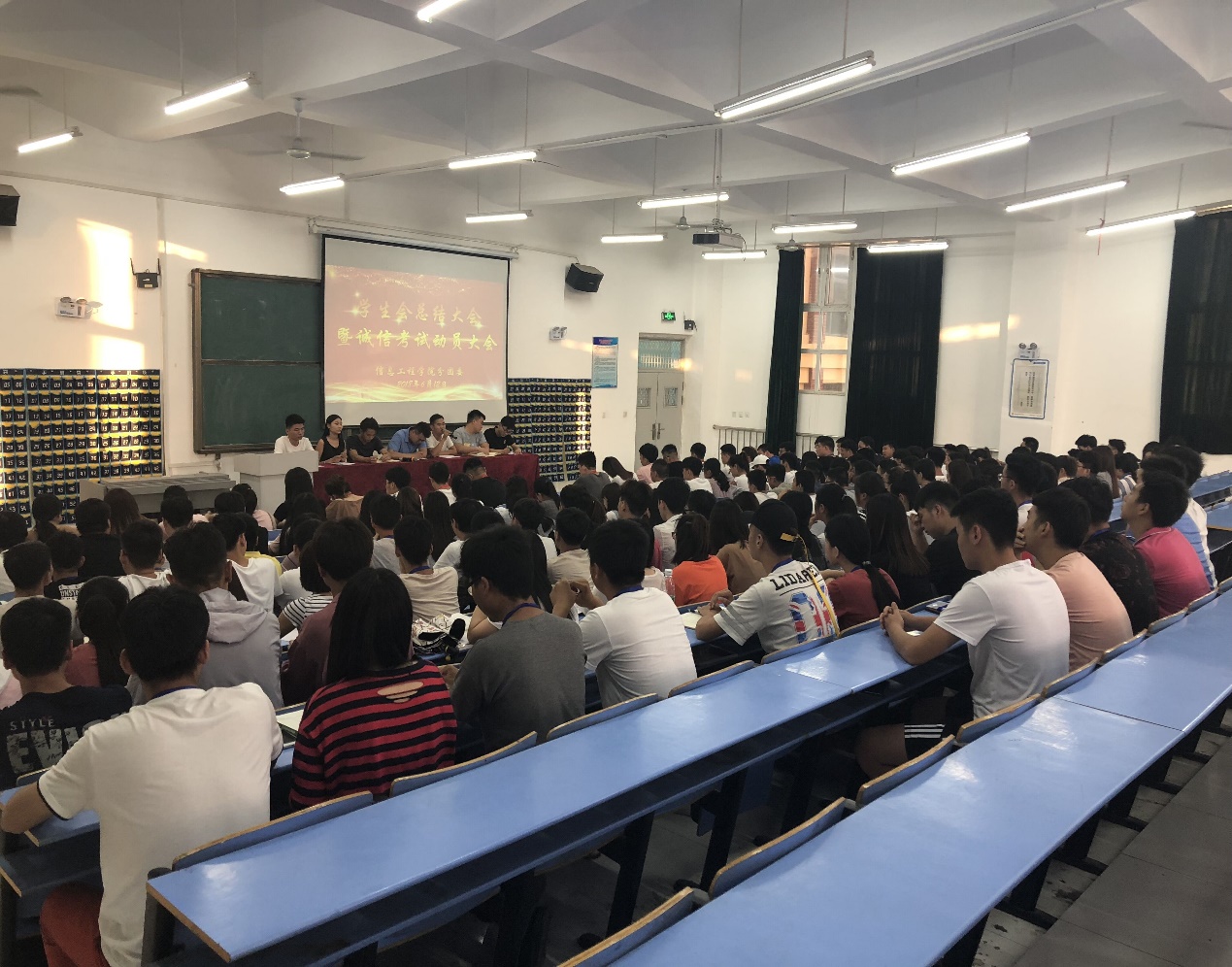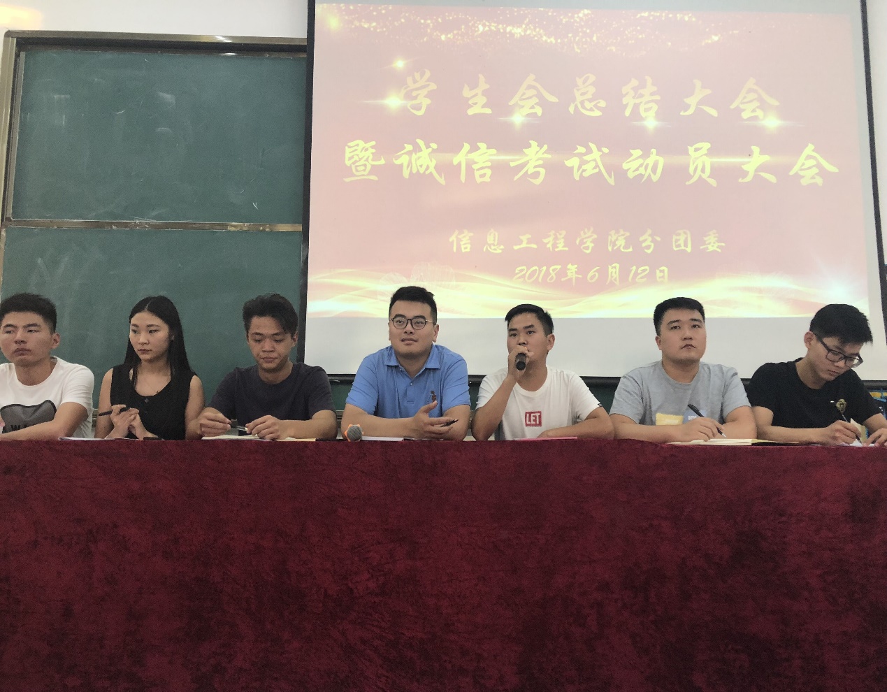 转眼间,一个学期过去了。为了对本学期学生会所开展活动做一个全面的总结,促进学生会今后更好的发展,同时为了严肃学生干部的考风考纪,营造积极向上的考试氛围,信息工程学院于6月12日下午在信科楼阶五召开了信息工程学院学生会总结大会暨诚信考试动员大会。参加此次会议的人员有信息工程学院分国产精品久久久久无码AV书记李费腾老师和第四届学生会全体成员。