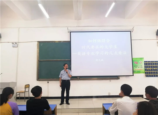 2018年9月7日上午9:00,外国语学院院长胡天赋教授在文华楼阶四为学院2018级全体新生开展题为《如何做符合时代要求的大学生》专题讲座。