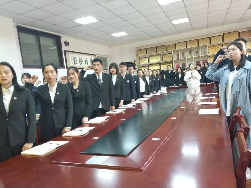 为促进党建工作进宿舍,充分发挥学生党员的模范带头作用,外国语学院于2019年4月12日下午在文华楼2-413会议室举行“亮身份、作承诺、当先锋、树形象”党员宿舍挂牌仪式。出席此次会议的有外国语学院党总支书记、学生管理副院长陈晴老师,学生党支部书记胡磊老师、组织委员王丹丹老师,辅导员李二明老师以及外国语学院全体在校党员和预备党员。会议由外国语学院学生党支部书记胡磊老师主持。