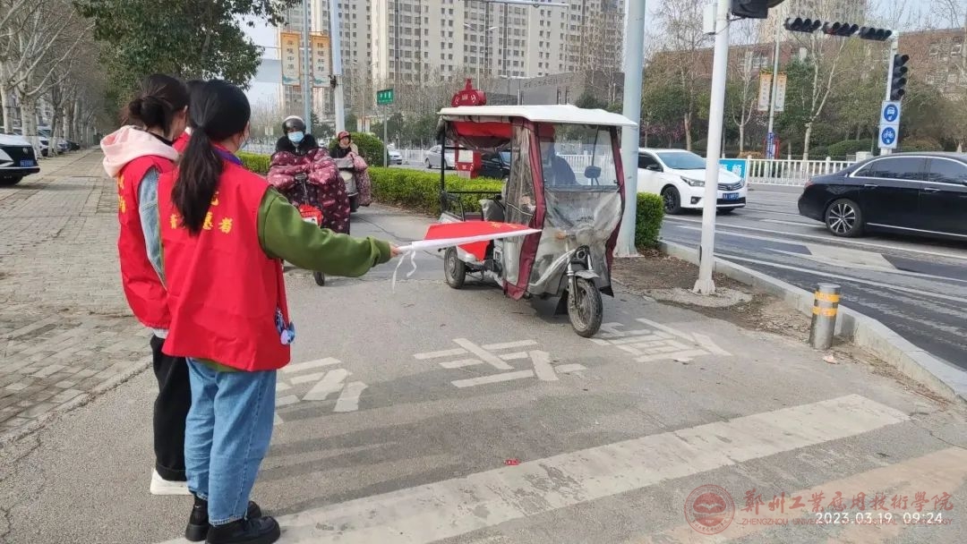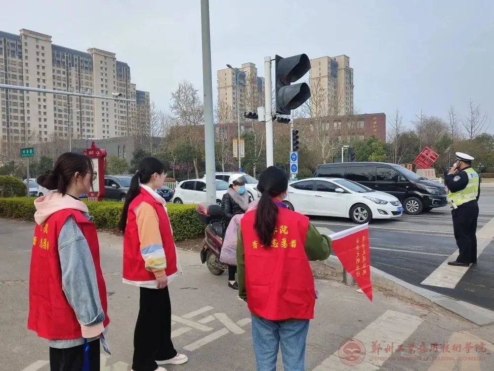 为了提高大学生社会责任感与使命感,加强社会实践能力,2023年3月19日,我校医学院开展了以“春日暖阳,为爱护航”为主题的交通协警活动。上午9点,我校医学院青年发展部二十余名志愿者如期来到新郑市中华北路与学院路交叉口交通道路。