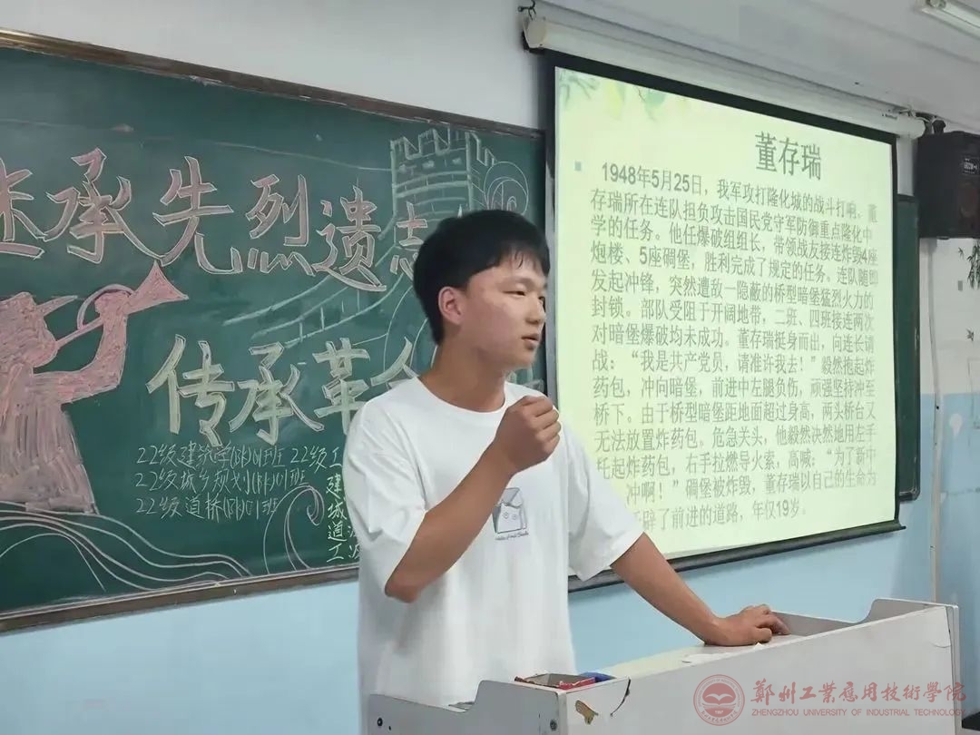 2023年4月16日我校建筑工程学院召开“继承先烈遗志,传承革命精神”的主题团日活动,昔日,国家危难之际,一心装满国的革命先烈们为了寻找一条救亡图存之路,在黑暗中摸索,无数次跃起与坠落,却从未有过一次放弃,他们不惧流血牺牲,历尽千辛万苦,最终才建立了新中国。