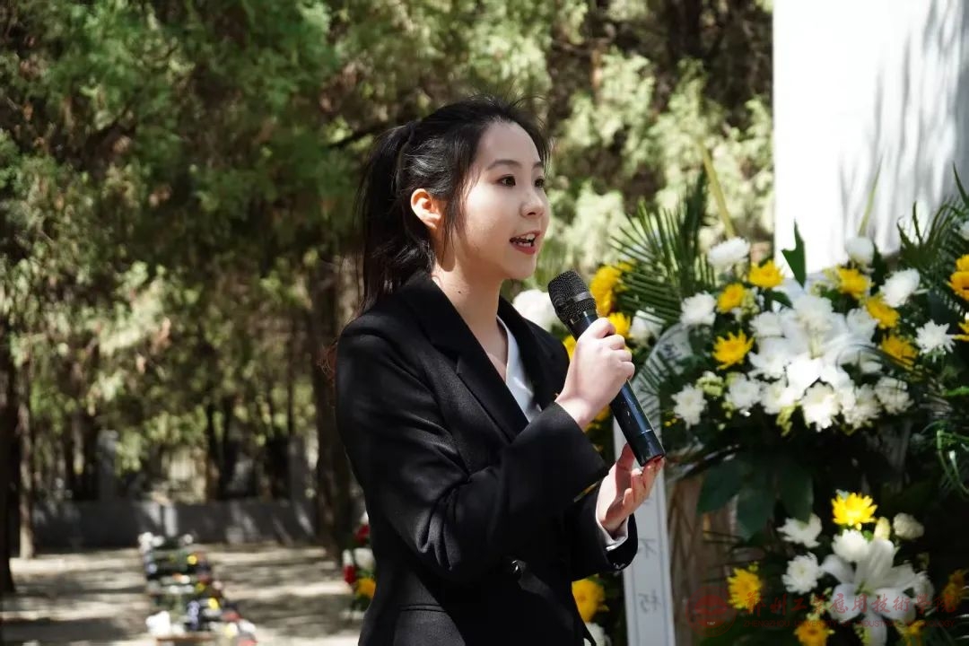 随后,马克思主义学院教师彭紫帆现场授课,真正的将思政课堂与实践教育相结合,她以《汲取英烈精神养分,厚植时代担当情怀》为主题,她从四个环节深入开展课程:追思先烈,铭记历史;寻觅昔日红色印记,开启尘封新郑党史;跨时空对话;传承精神,勇担重任。引导学生将先烈精神转化为实际行动,弘扬爱国主义精神;以先烈精神为指引,培养责任担当意识。最后,大家有序为烈士敬献鲜花。