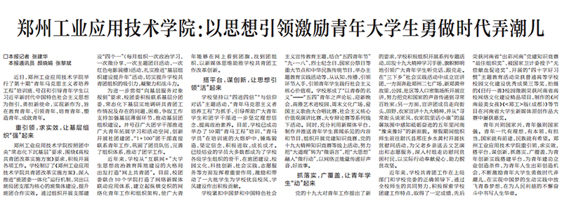 【河南日报】郑工学院:以思想引领激励青年大学生勇做时代弄潮儿