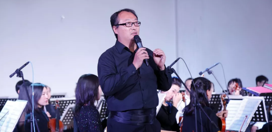 随后,担任本场演出的著名指挥家马老师向在场的师生普及了乐理知识,从弦乐到管乐,从竖琴到鼓,演奏家们利用耳熟能祥的歌曲让我校师生详细的了解了各类乐器的特征及作用。