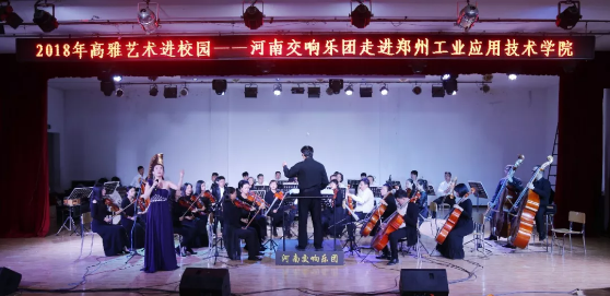 为了弘扬优秀文化,提升学生文化素养,10月22日晚19:00,2018年“高雅艺术进校园”——河南交响乐团走进郑州工业应用技术学院专场音乐会在东校区演播厅举行,河南交响乐团为我校师生带来了一场视听盛宴,学生处吴杰霞处长,音乐学院乔新建院长及各学院老师、学生共400余人一起品味这中西结合,精彩绝伦的交响诗篇,欣赏这高雅艺术的魅力。