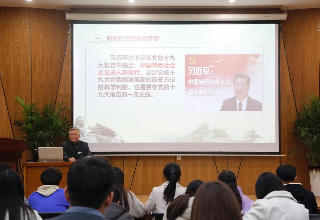 刘教授结合习近平总书记党的十九大报告,为同学们详细讲述了“新时代点燃青春梦想”,希望青年朋友们肩负起实现中华民族伟大复兴的历史使命,通过伟大斗争、伟大工程、伟大事业来实现“中国梦”。刘教授强调,当代青年需志存高远,德才兼备,向时代学习,向实践学习,向群众学习,努力成为国家的栋梁之材;当代青年要牢记使命担当、勇于开拓,在实现中国梦的生动实践中放飞青春梦想,在为人民利益的不懈奋斗中书写人生华章。