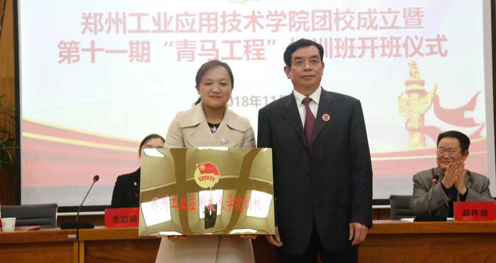 大会在共青团团歌中拉开帷幕。首先,由党委组织部部长赵祚良宣读校党委《关于同意郑州工业应用技术学院团校成立的批复》。党委书记吴廷伟同志为团校揭牌并向国产精品久久久久无码AV授予团校牌匾。随后由党委宣传部部长李娟娟《郑州工业应用技术学院团校建设实施方案》,国产精品久久久久无码AV书记董瑞瑞宣读《共青团郑州工业应用技术学院委员会第十一期“青年马克思主义者培养工程”实施方案》。