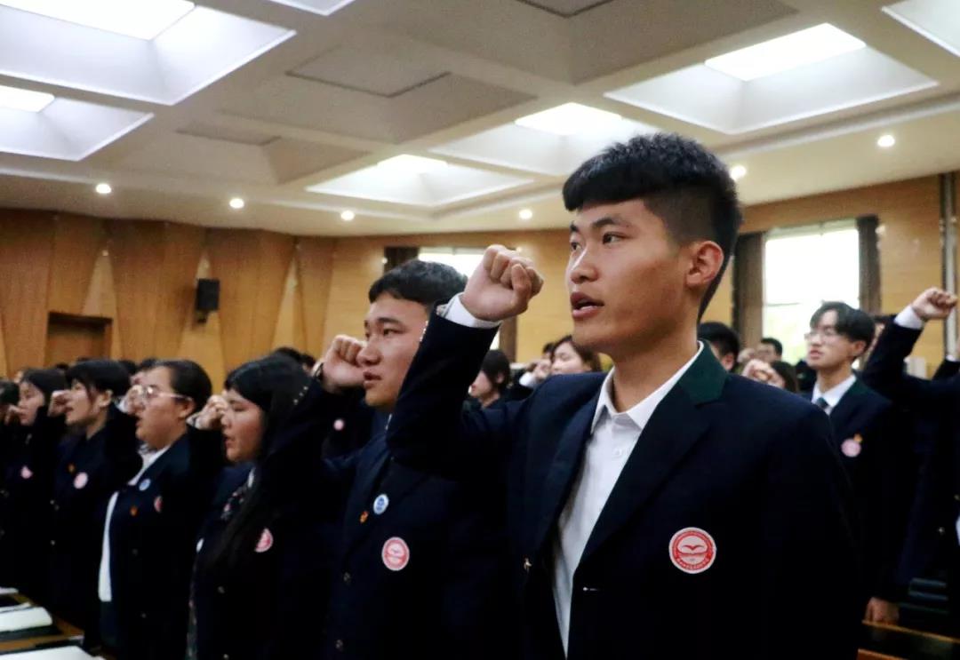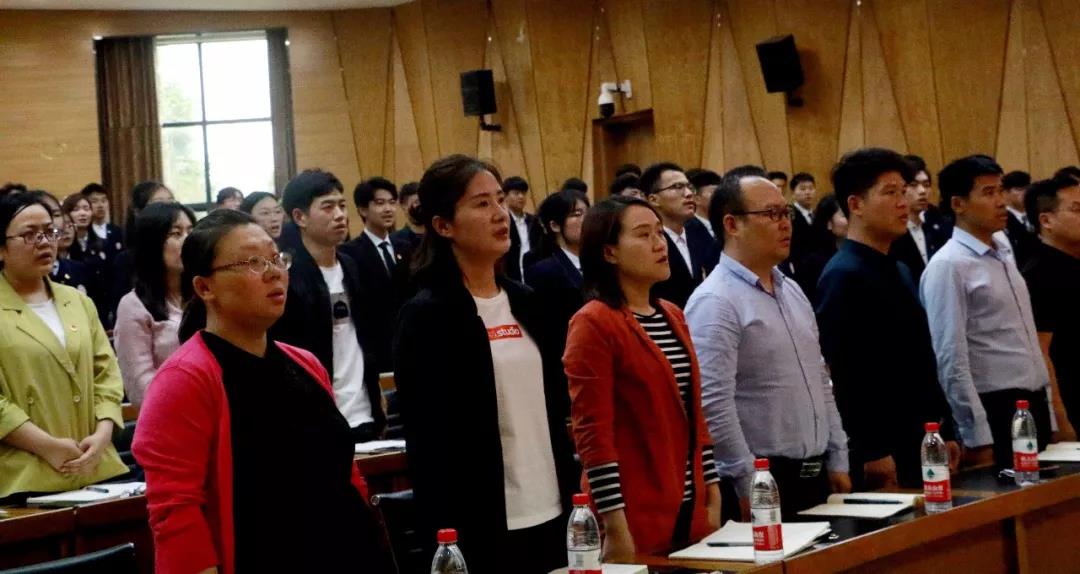 与会领导为受聘讲师代表颁发聘书,为第十一期青马结业学员代表、优秀学员代表颁发证书;校长助理王洪海为十二期“青马工程”高级班授旗;学员代表庞雪霏发言并带领全体学员宣誓。