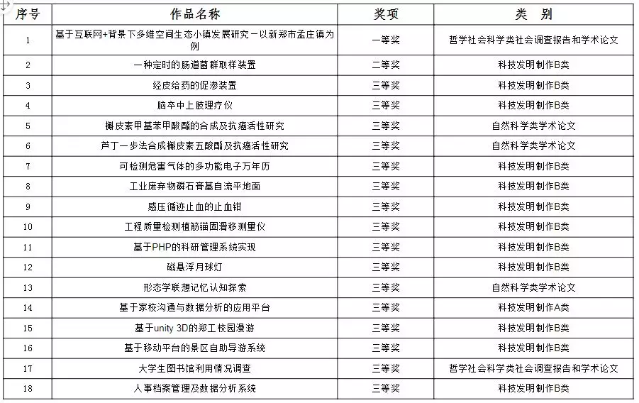 我校选送参赛的21项作品中有18项获奖,其中,一等奖1项,二等奖1项、三等奖16项。这是我校自参加该项赛事以来所取得的历史最好成绩。