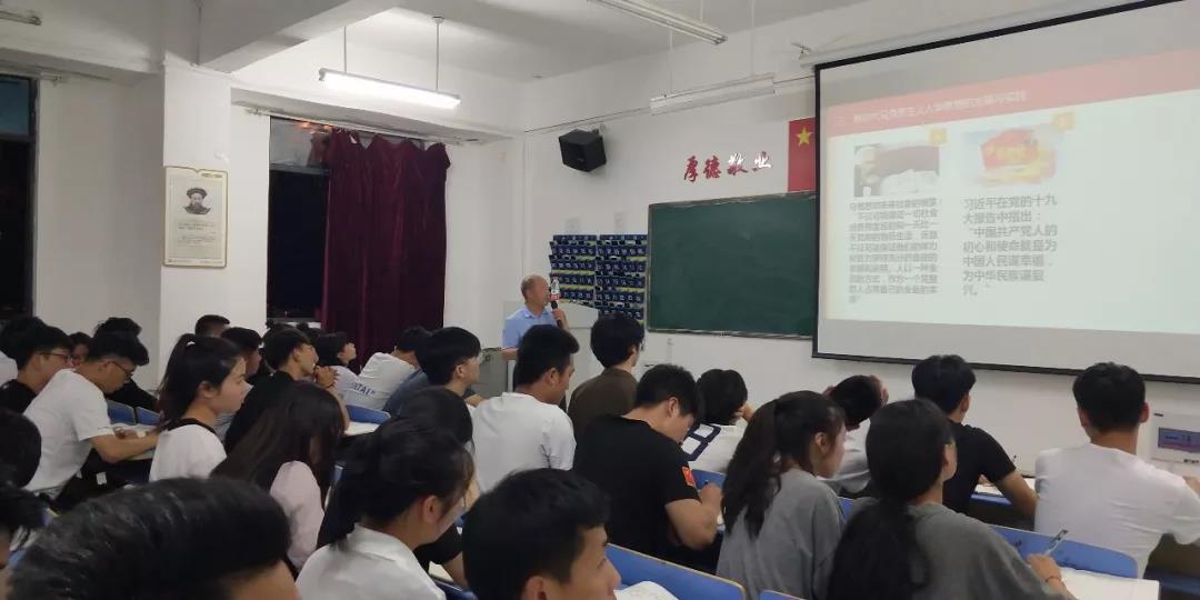 5月30日晚七点,郑州工业应用技术学院第十二期青年马克思主义者高级培训班第三次课程在文华3-110教室开课。本次授课老师为思想政治理论教学部丁心镜教授,主讲题目为马克思主义人学思想的新时代价值,130名青马班学员参加了本次课程。