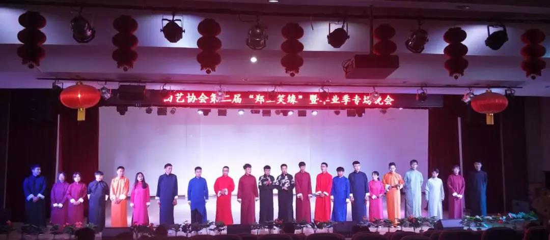 2019年5月31日晚18:40,由校社团联合会主办,曲艺协会承办的追忆五四,激扬青春——曲艺协会第二届“郑工笑缘”暨毕业季专场晚会在演播厅隆重举行。郑工曲艺协会指导老师音乐学院管乐团团长周何教授、医学院院长魏小萌教授、医学院副院长赵纯教授、医学院王彩霞教授、大学生心理健康教育中心副主任李郁清教授、管理学院张娜民教授等500余人参加本次晚会。