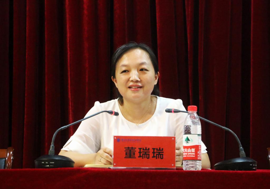 最后,董瑞瑞书记做动员讲话。她首先简要总结了暑期“三下乡”社会实践活动,在全校师生的共同努力下,社会实践活动取得圆满成功,得到了学校领导的好评,并获批了团中央的专项团队,也是学校第一次获批团中央暑期三下乡社会实践活动专项活动;在暑期还组织了学生参加了中国青年创新创业大赛,获得了省赛银奖,这些成绩的取得离不开师生的积极配合和扎实工作,希望大家继续努力,再接再厉,再创辉煌。针对今年的迎新工作,董书记指出,“国际化、信息化、现代化”是今年迎新工作的标准,“热情、周到、高效、细致、文明”是今年迎新工作的原则,她向全体青年志愿者提出了八点要求和希望:一、要高度重视,统一认识,明确迎新工作的意义。二、要明确责任,提高协作意识,全面把握迎新工作的流程。三、要提高工作执行力,热情周到服务,确保新生接待工作细致周到。四、要树立主人翁意识,增强纪律意识,时刻维护学校形象。五、要增加团队意识,全校青年志愿者要上下联动,积极投入,确保各项工作高效完成。六、要注重个人言行,重实效,充分发挥传帮带的优良传统。七、要增强个人安全意识,注意人身、财产、车辆安全,时刻提高警惕,维护新生的合法权益。八、要做到首问负责制,细致入微,确保学校迎新工作安全、顺利进行。用青年志愿者的实际行动,向新生及家长展示郑工的良好形象。