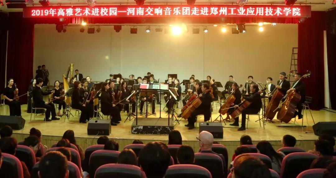 为加强校园文化建设,提升校园文化品味,增强艺术育人效果,10月24日晚19:00,2019年“高雅艺术进校园”——河南交响乐团走进郑州工业应用技术学院专场演唱会在东校区举行,河南交响乐团为我校师生带来了一场视听盛宴,我校400余位师生齐聚演播厅,一起品味这交响乐的饕餮盛宴,欣赏这高雅艺术的魅力。