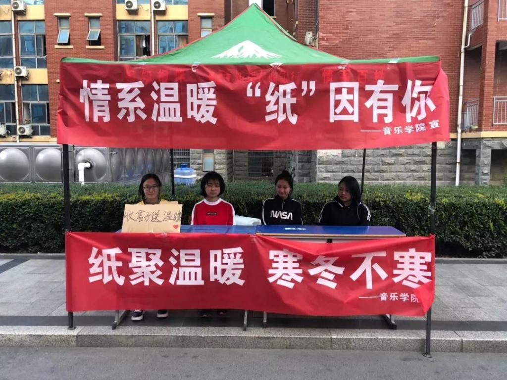 “盒子里的温暖”作为校学生会的重点活动,于每年11月11日开始实施,借助“双11”购物热潮,号召每个学院学生会设立服务台,每个服务台都有宣传标语,并配备志愿服务人员,主动收集学生废旧的快递纸盒,将纸盒变废为宝。在寒风之中,志愿者们坚守岗位,从早到晚,从未停歇。一个多星期的奋战,12个团属学生组织将付出的心血汇聚成爱心果实,创纪录的收集纸箱5000多斤,出售后换得现金2800余元。