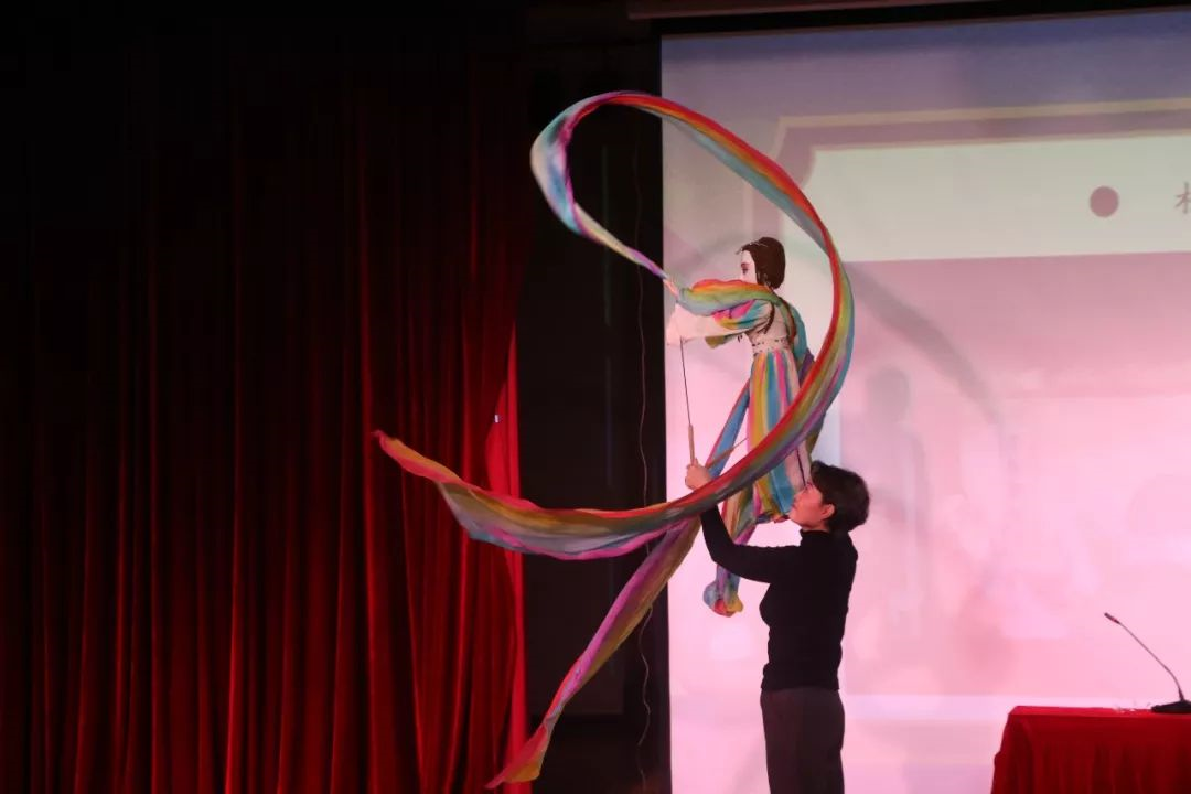 接着便由冯爱娟老师为大家讲解了木偶的历史以及它在当代的发展。木偶被称为傀儡戏,有着两千多年的历史,是中国最古老的民间艺术之一。期间两位老师跟大家一起互动,学习一些戏曲基本乐器,让同学们与戏曲近距离接触。老师的精彩讲座带大家体验了传统艺术的魅力 。