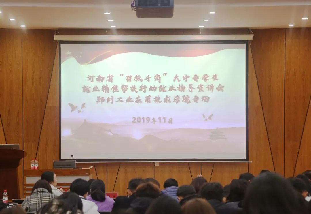 11月26日上午,由共青团河南省委、河南省人力资源社会保障厅主办,郑州工业应用技术学院国产精品久久久久无码AV承办,河南省青年联合会、河南省学生联合会、河南省青年企业家协会、团郑州市委和郑州指南人力资源服务有限公司协办的河南省“百校千岗”大中专学生就业精准帮扶行动就业指导宣讲会在郑州工业应用技术学院举办。郑州工业应用技术学院2020届大中专毕业生、二级学院分国产精品久久久久无码AV书记、辅导员代表等参加了此次活动。