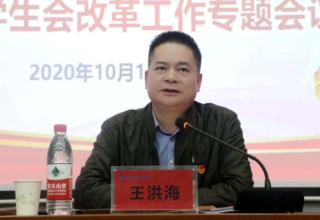 校党委副书记王洪海副教授做了讲话。他指出,各级学生会要顺应时代要求,深入学习习近平总书记贺信精神,切实树立改革的责任感、使命感和紧迫感,学校各部门、各学院要把学生会打造成为始终跟党走的先进组织。学生会是一个精英团队,要牢牢把握组织定位;学生会成员要起到模范带头作用,约束自己、服务他人,从同学中来、到同学中去,成为同学们中的标杆和榜样;学生会成员要注意处理个人与团队的关系、理论与实践的关系、工作与学习的关系、现实与梦想的关系。要理论和实践相结合,既要脚踏实地,又要仰望心空。要把学习放在第一位,德才兼备,学会统筹。