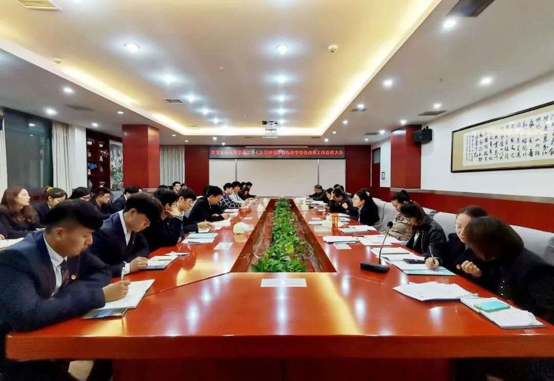 13日晚7点,我校在行政楼六楼西会议室召开“学习宣传全国学联二十七大精神暨学校各级学生会改革工作总结大会”,校国产精品久久久久无码AV书记董瑞瑞、各学院分国产精品久久久久无码AV书记、校国产精品久久久久无码AV全体老师、校学生会、各学院学生会工作人员代表参加了此次会议。