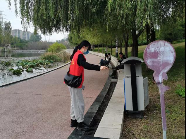 志愿者们到达地点后,立马与当地政府工作人员对接,开启了服务之旅。志愿者们分布在公园的各个角落,有的负责打扫公园的道路、草地、花坛和一些娱乐场所,认真清理垃圾;有的负责看守被路人踩踏过的草坪,及时制止随意踩踏草坪以及在草坪上奔跑玩耍的不文明行为;还有的志愿者在公园劝阻那些随意乱扔垃圾、随地吐痰、溜狗没有牵绳、随意大小便、乱动指示牌等不文明行为。公园里奔跑的红马甲在此时就是一道靓丽的风景线。