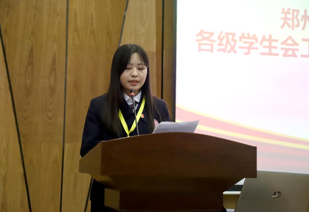 会上,校学生会主席团成员刘雯、医学院学生会执行主席要雨彤分别作为组织代表发言,号召全体学生会工作人员加强作风建设,强化责任意识,敢于承担工作,提高服务能力,维护同学权益,构建和谐校园,真正发挥联系学校与学生的桥梁和纽带作用,以优异的成绩赢得广大同学的信任、拥护和支持,为学校教育事业的发展、为中原更出彩、为实现中华民族伟大复兴贡献郑工学子的青春力量。