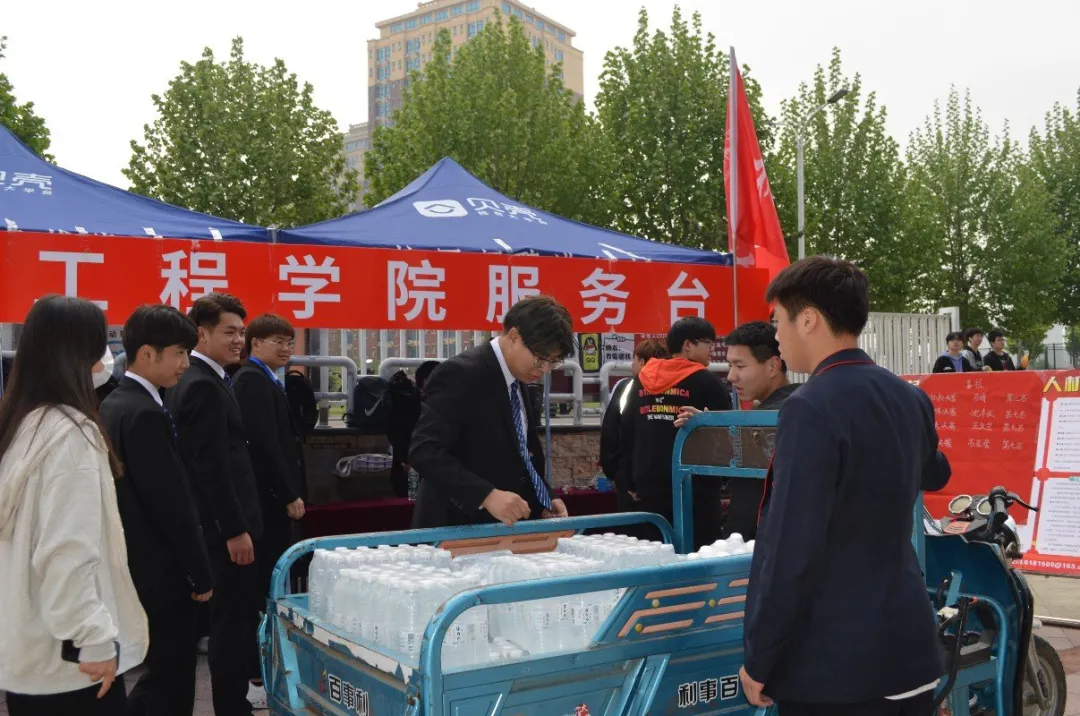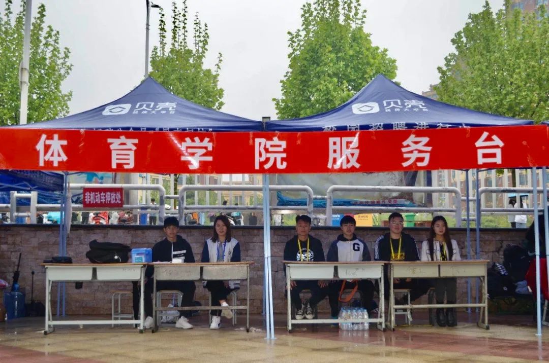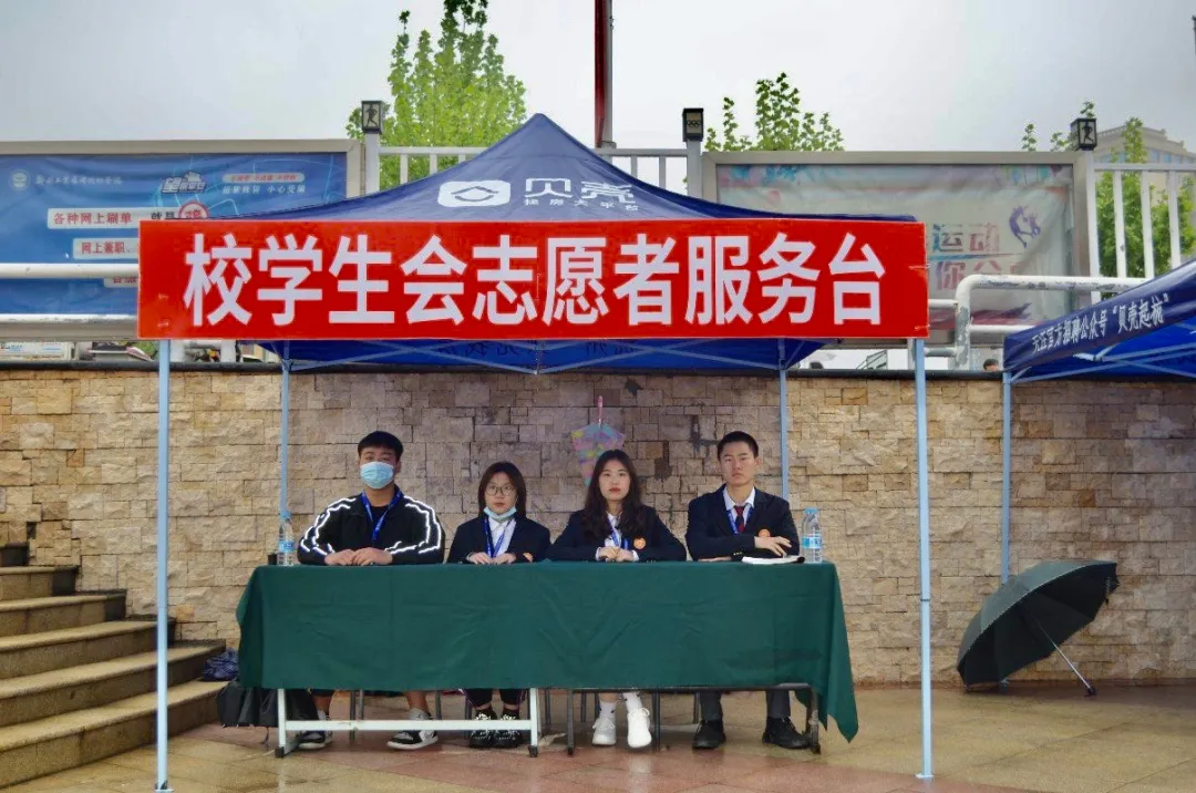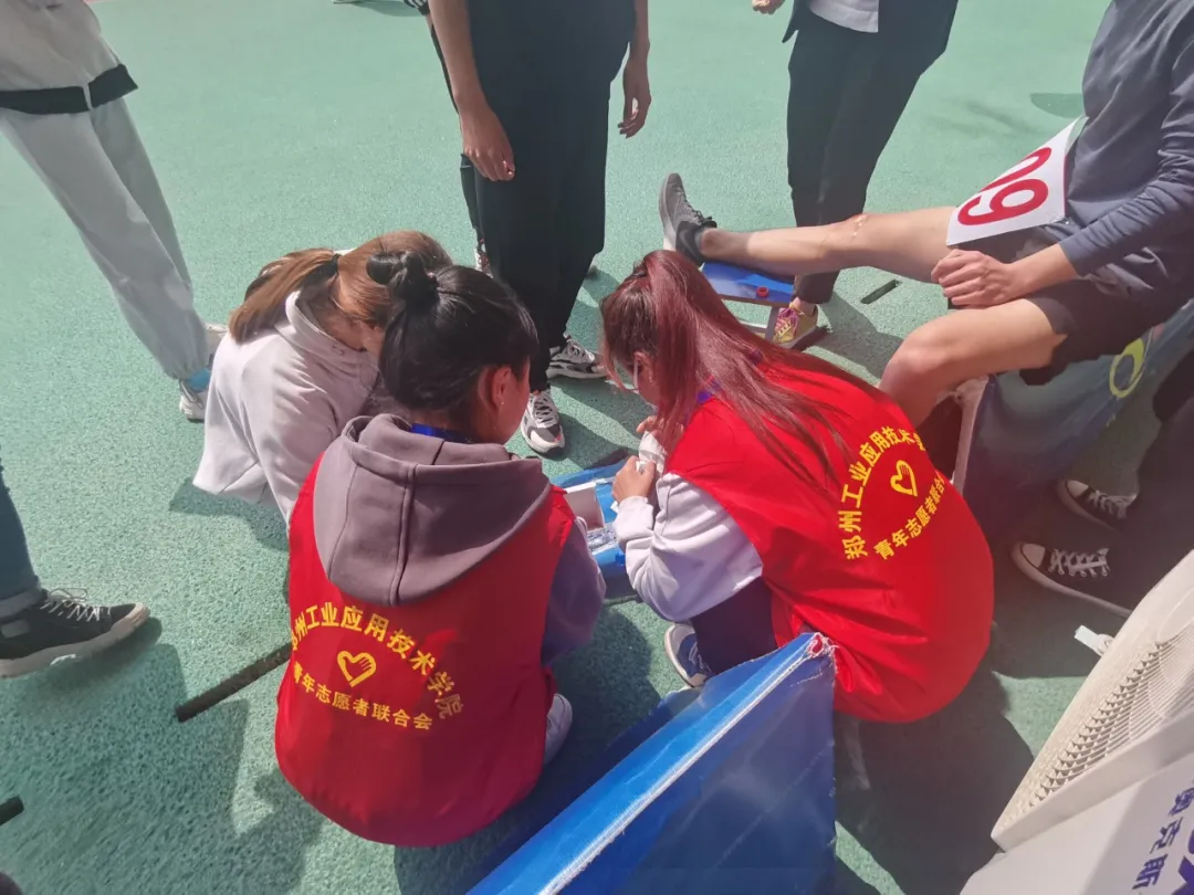 运动会期间,校院两级学生会、青年志愿者联合会积极发挥基层团组织的战斗堡垒作用,设立志愿服务台为同学们提供服务。比赛前,为让运动员以饱满的精力参加比赛,志愿者积极协助运动员做好赛前的签到、检录工作,让运动员以更平稳的心态面对比赛;比赛后,志愿者及时搀扶比赛人员,并为运动员送去饮用水和葡萄糖,保证同学们安全健康,为大家保驾护航。运动会期间,志愿者还积极为受伤的同学处理伤口,并耐心仔细地告诫受伤的运动员如何保护好伤口,让大家感受到学生会组织的用心。为更好地为同学们提供服务,校学生会还联系学校内多家商家,为各学院、各组织提供饮用矿泉水,为运动会的成功举办贡献青春力量。