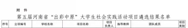 2021年6月23日河南省教育厅发布第五届河南省“出彩中原”大学生社会实践活动项目遴选结果的通知,在此次活动中,我校商学院“晨曦”志愿服务团获批河南省第五届“出彩中原”大学生社会实践活动项目。