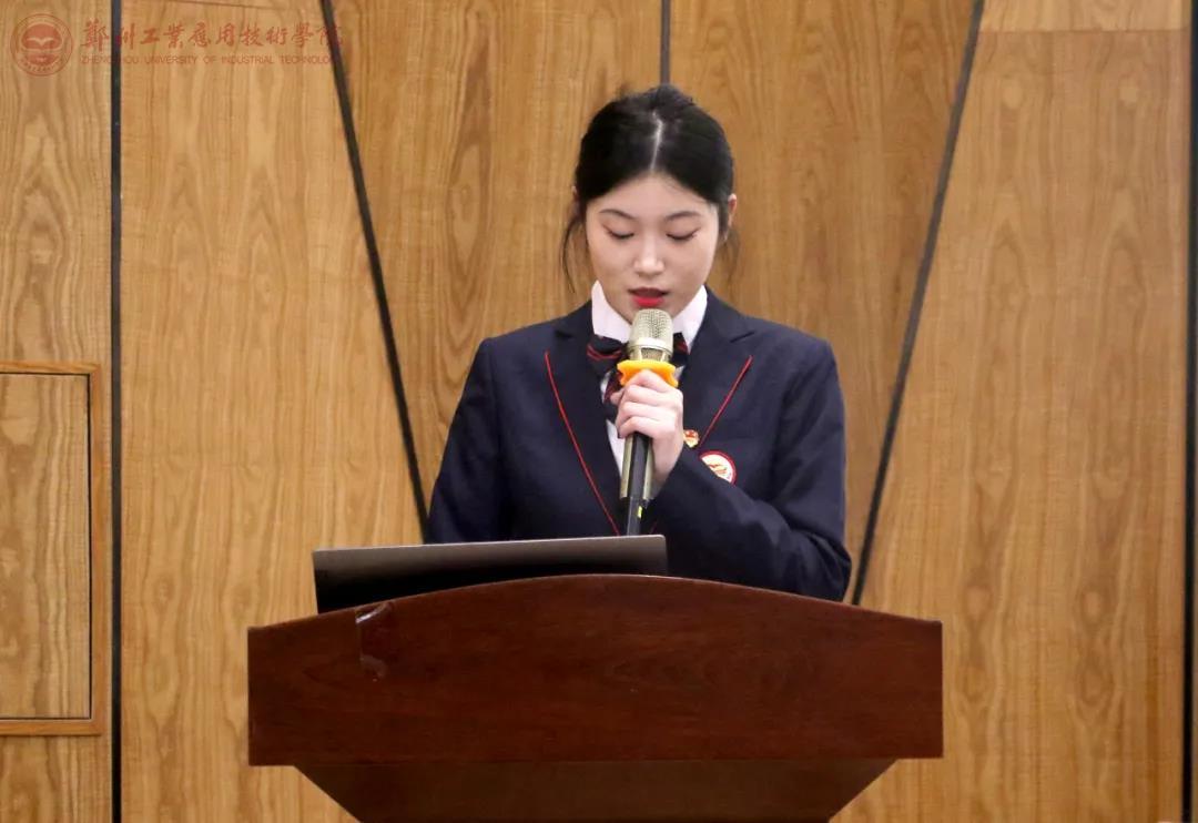 郑工新青年新媒体中心负责人元怡同学作为学生干部代表发言,她谈到:学生组织是学生干部展示自我的平台,需要大家严格要求自己,用高度的责任心和奉献精神,搭建起学校与同学之间的桥梁,不断探索,勇于创新,努力为全校同学办好事、办实事,相信在学校领导的正确领导下,新一届的团属学生组织将为学校教育事业发展做出新的贡献。
