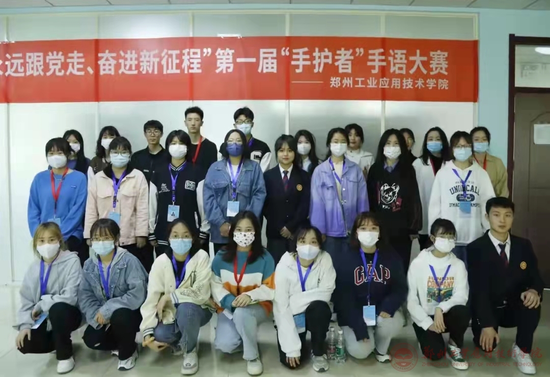 为深入学习贯彻习近平新时代中国特色社会主义思想和党的十九大精神,迎接党的二十大召开,庆祝中国共青团建团百年,全面培育和践行社会主义核心价值观,促进手语事业在高校内的发展,丰富校园文化艺术生活,展现当代大学生关爱聋哑人、热爱手语的精神,营造“平等、团结、互助、和谐”的校园氛围,我校青年志愿者联合会于4月16日下午,在新校区大学生事务中心二楼团体活动室二成功举办了郑州工业应用技术学院“喜迎二十大、永远跟党走、奋进新征程”第一届“手护者”手语大赛。