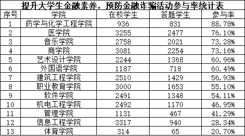 为进一步提升我校学生的金融素养,宣传普及金融基础知识,提高大学生风险防范意识,培养理性、健康,具有财经素养的新时代青年,校学生会于6月份配合中国证监会、中国青年报社举办“我为同学做件事”——提升大学生金融素养,预防金融诈骗活动,全校1万余名同学参加了此次活动。