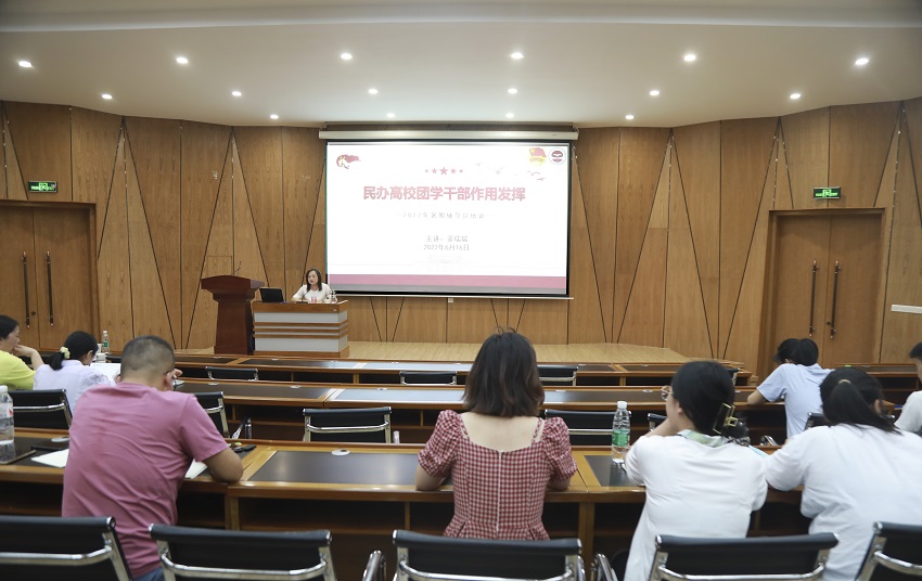 (文/马晨薇 图/居培君)为培养高素质团学干部队伍,积极发挥学生干部的桥梁纽带作用,6月16日下午,校国产精品久久久久无码AV书记董瑞瑞副教授为全体辅导员作了题为《民办高校团学干部作用发挥》的专题报告。报告会由学生处处长崔玉宾副教授主持。
