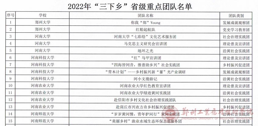 近日,团省委下发《2022年河南省大中专学生志愿者暑期文化科技卫生“三下乡”社会实践活动国家、省级重点团队名单》,我校1支实践团队获评全国重点团队,3支实践团队获评省级重点团队。